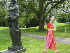 Life-size figures painted on plywood representing youth from all over the